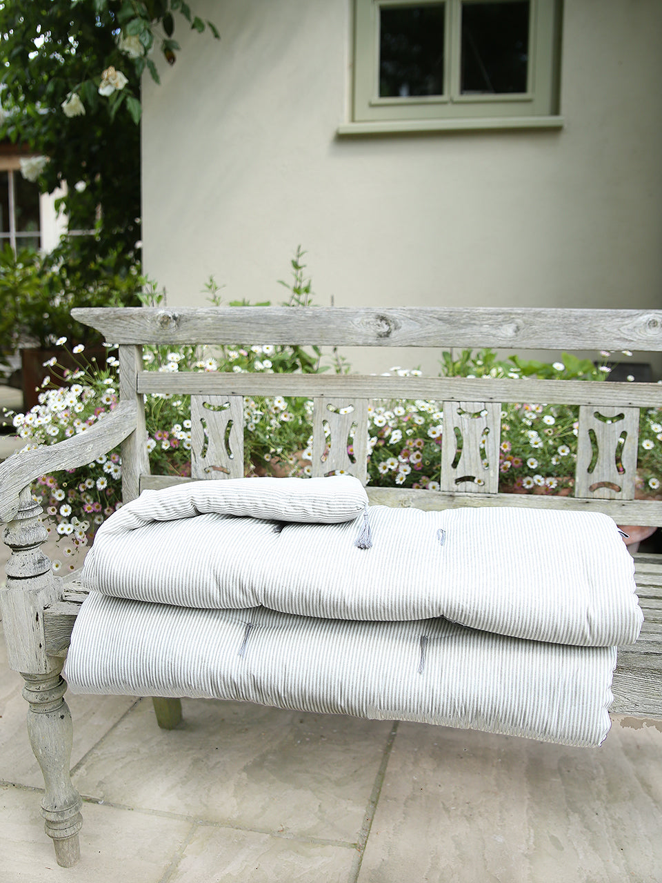Padded blanket to bring added comfort to any hard surface either indoors or to enjoy in the garden.